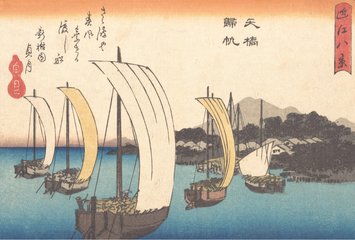 Fishing Boats Sailing Back to Yabase by Utagawa Hiroshige c1830s Japanese poster