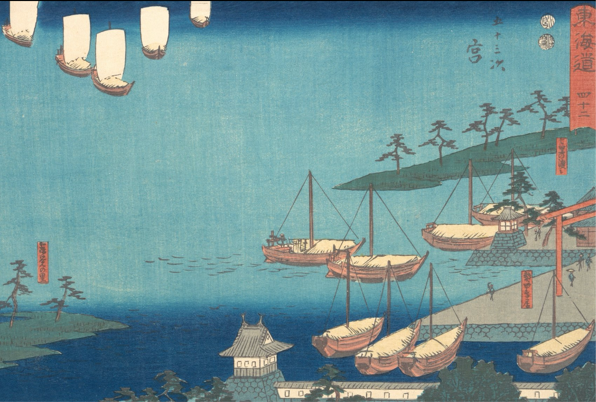 Utagawa Hiroshige, born Andō Tokutarō(安藤 徳太郎; 1797 – 12 October 1858), was a Japanese ukiyo-e artist, considered the last great master of that tradition.