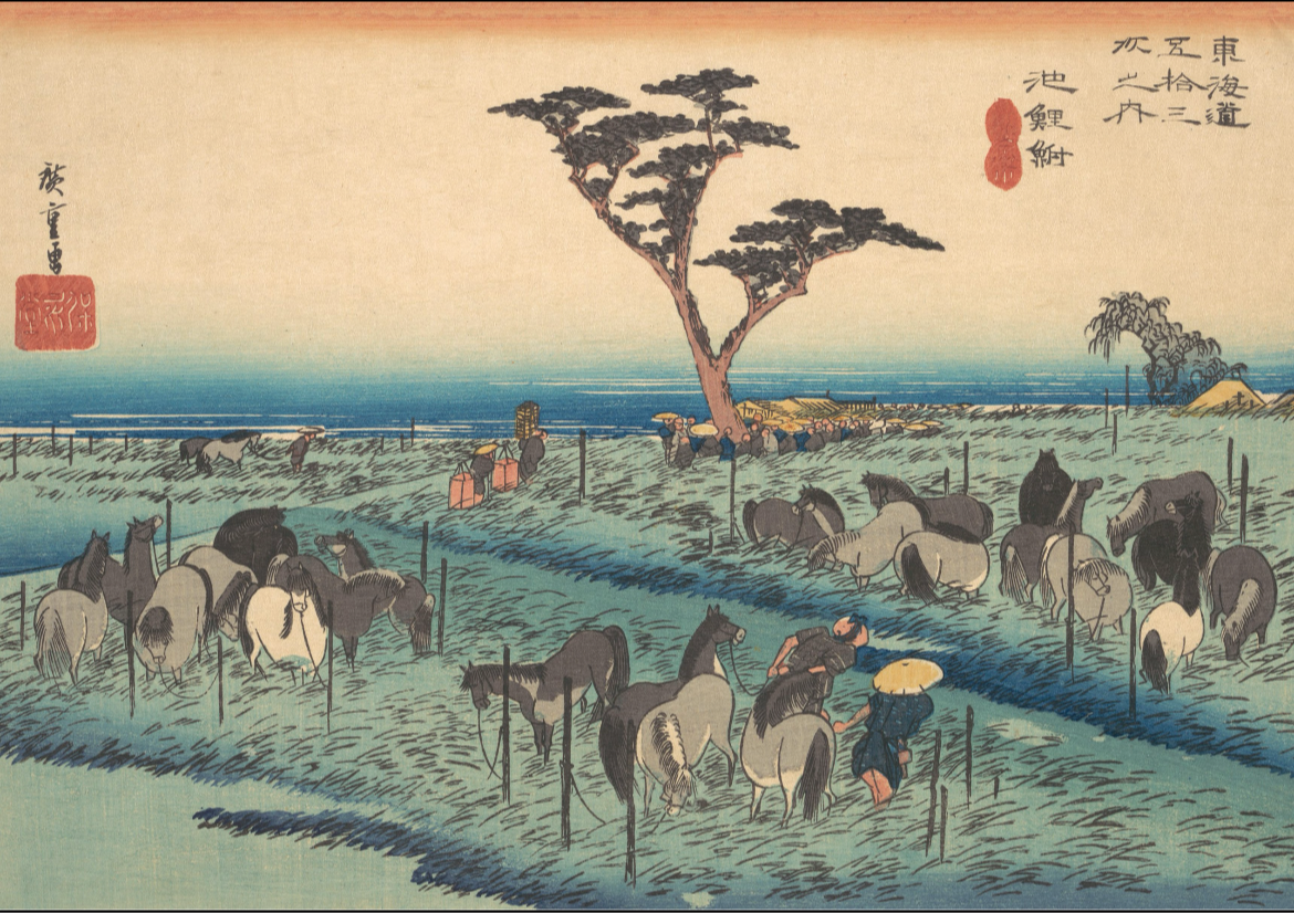 Chiryu, Shuka Uma Ichi reproduction Japanese poster by Utagawa Hiroshige c1830s.