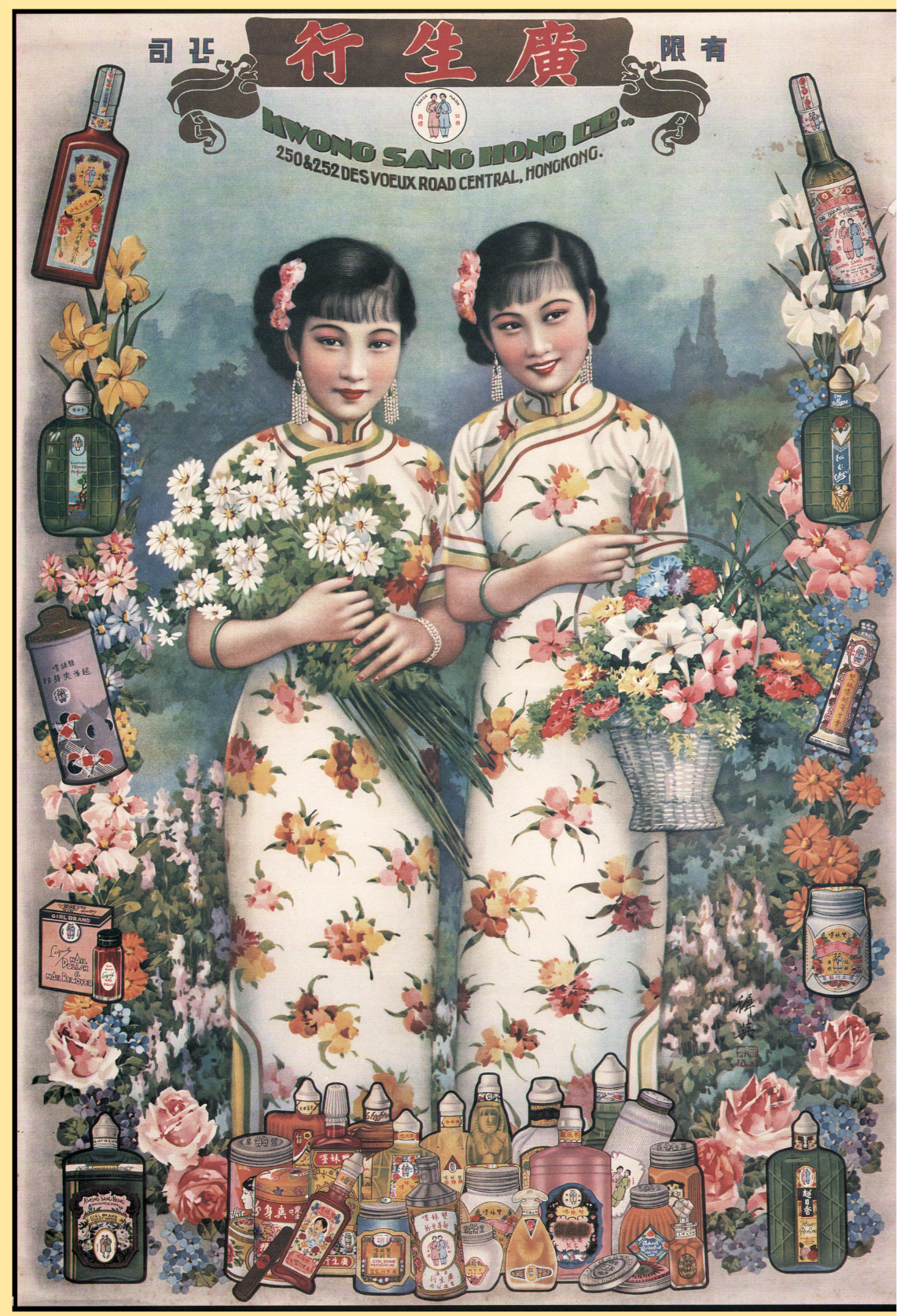 Vintage 1930s Chinese Kwon Sang cosmetics advertising poster