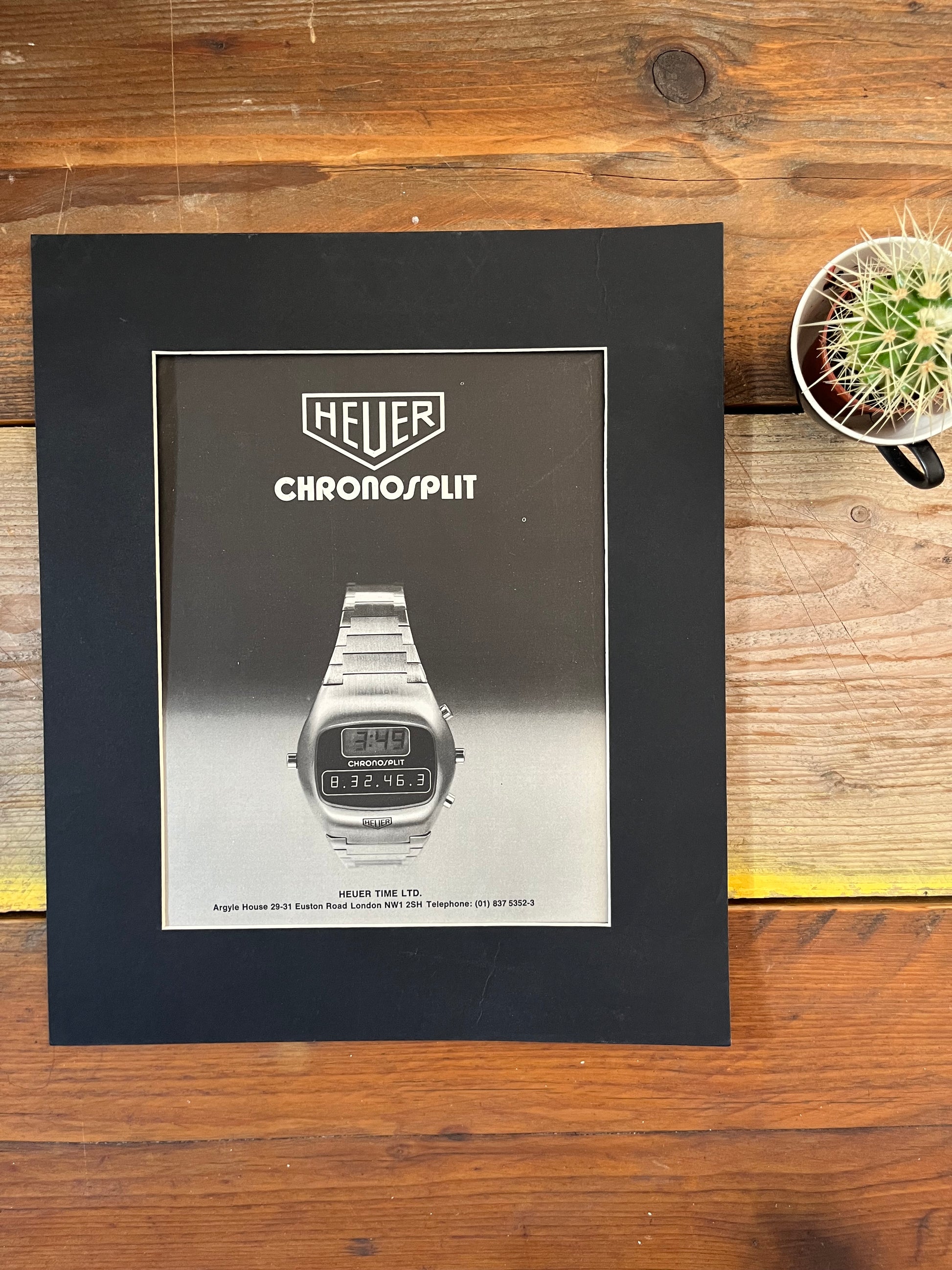 Vintage 1973 Tag Heuer Chronosplit watch advertisement