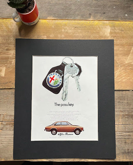 Original 1970s Alfa Romeo 2000gtv advertisement, mounted and ready for framing. This is an original print and not a scanned copy. A superb piece of artwork.