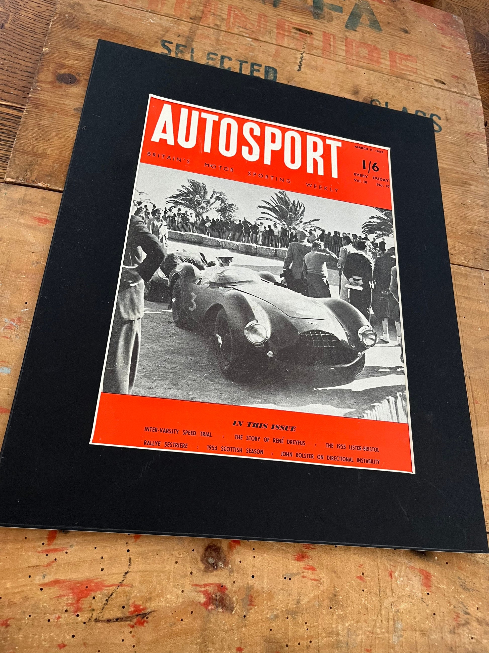 Rare and original 1955 Autosport magazine print featuring an Aston Martin racing car.