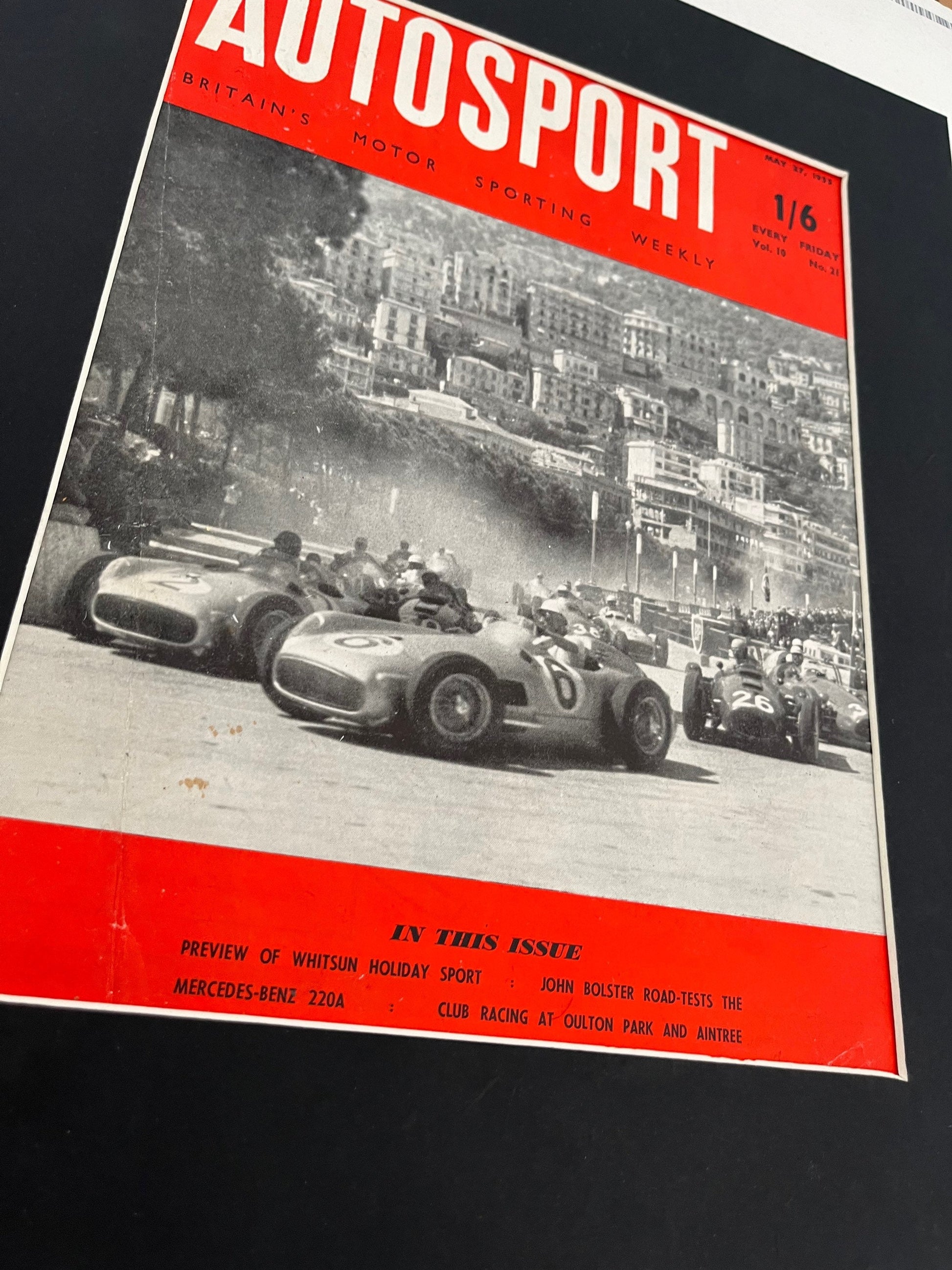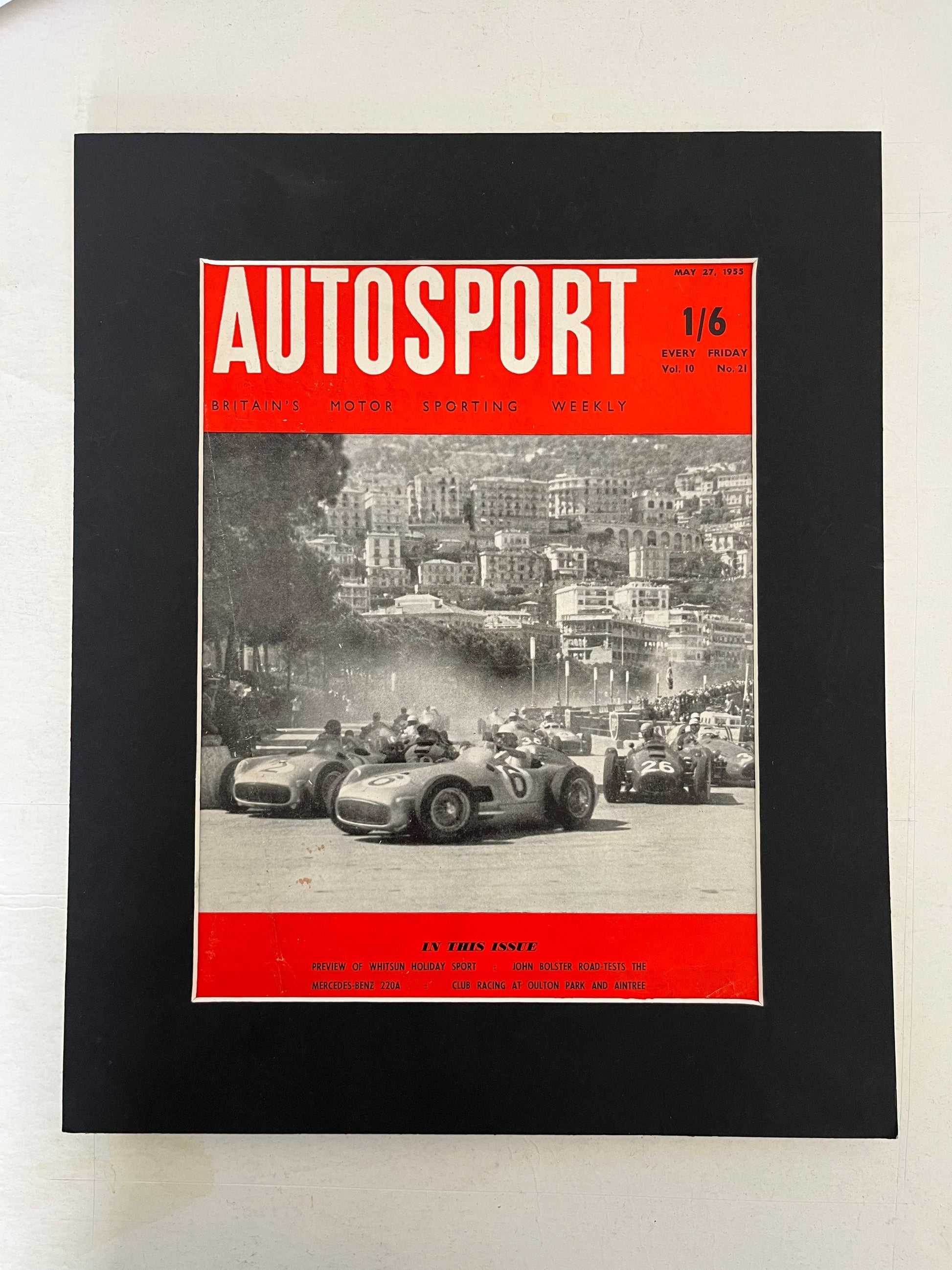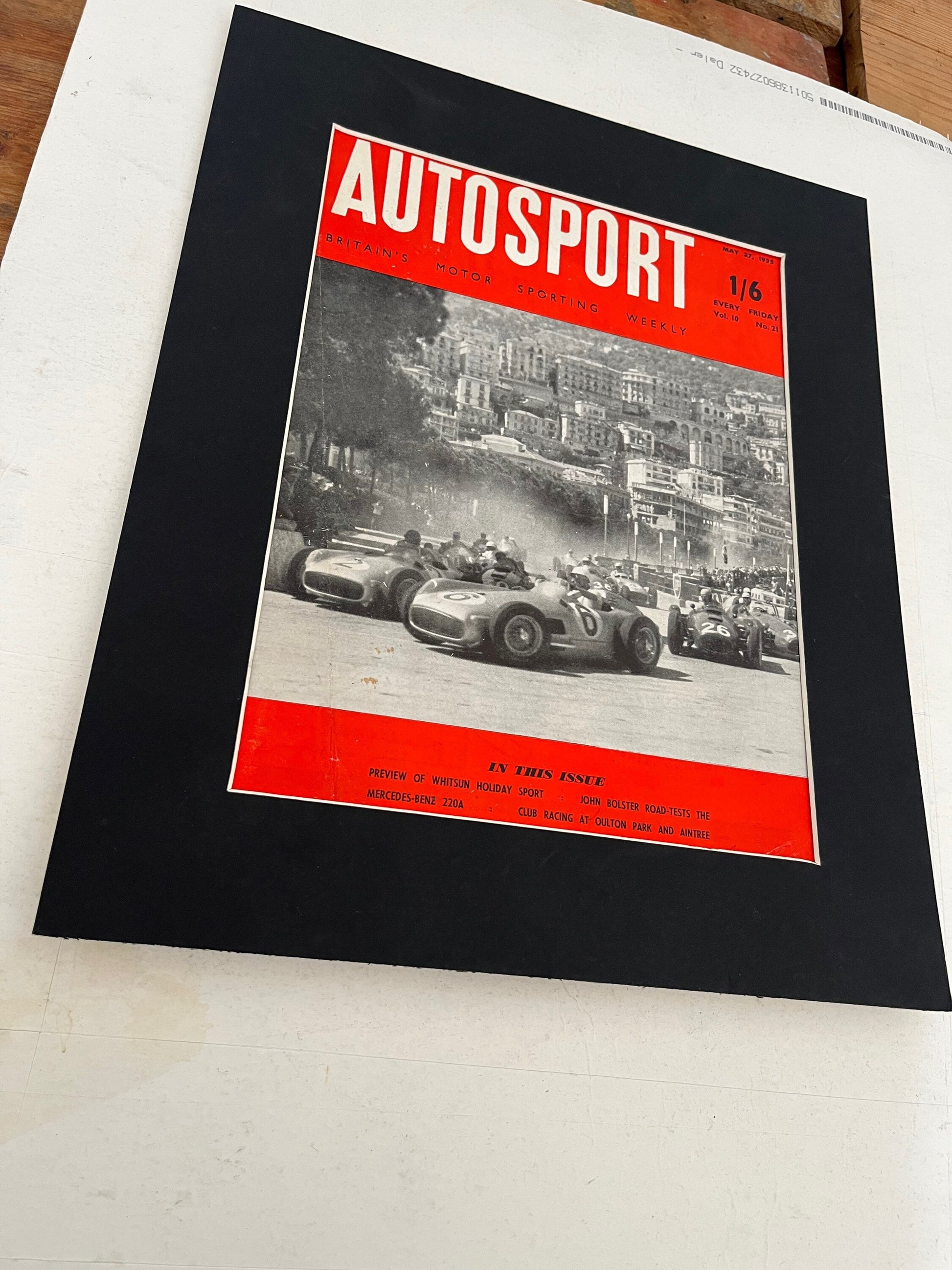 Rare and original 1955 Autosport magazine cover print featuring a scene from the a Monte Carlo Grand Prix.