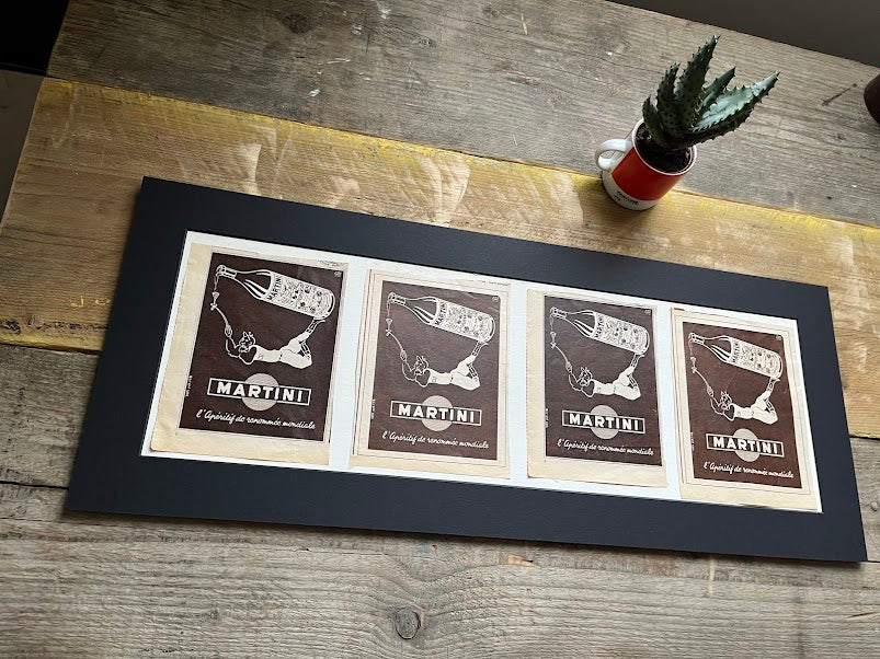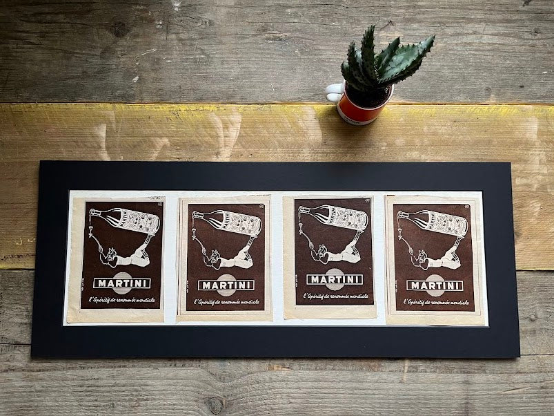 Bespoke Martini artwork from original 1950s print advertisements. Card mounted and with a black card surround.