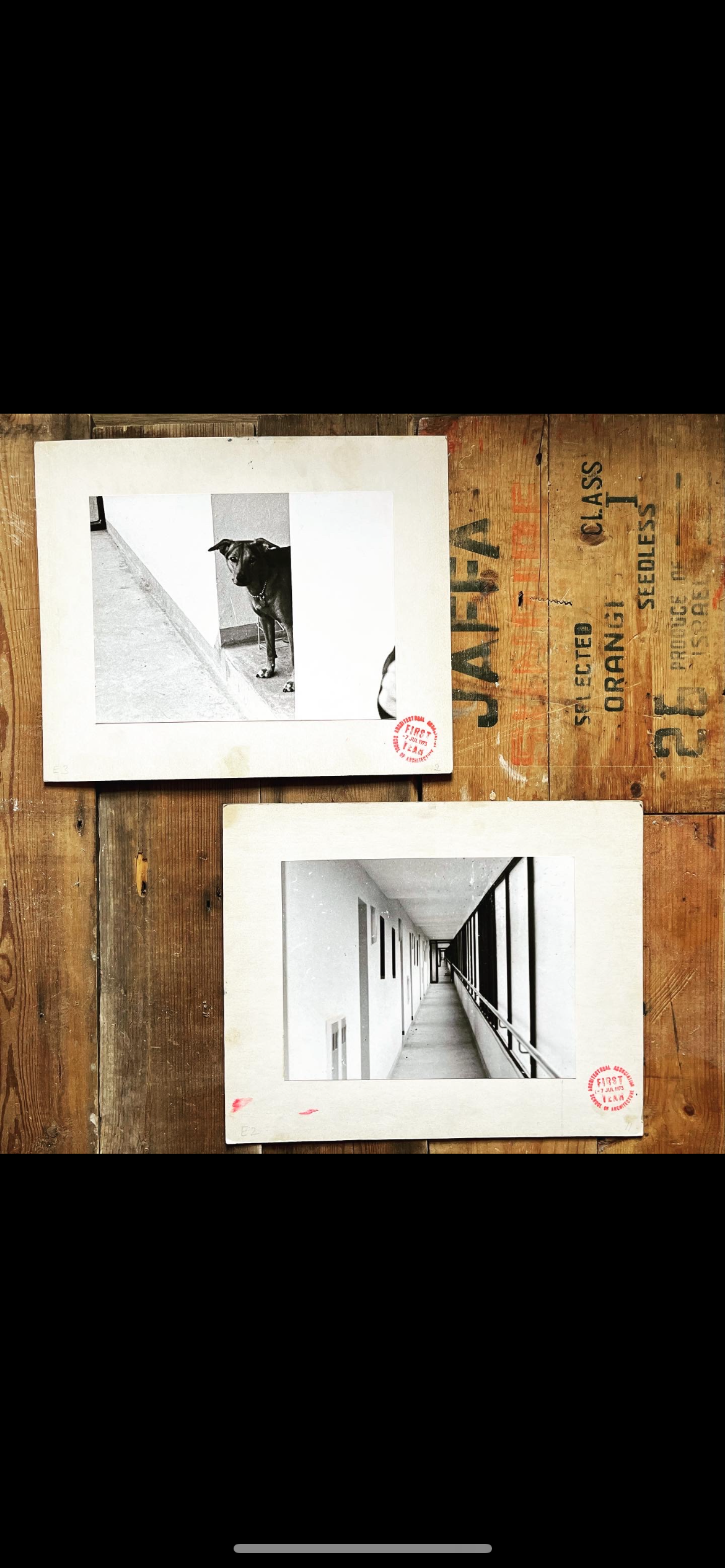 An original card mounted b/ w photograph of a modernist corridor.… Artist unknown, location unknown. Stamped “1973 first year project Architectural association School of architecture. “
