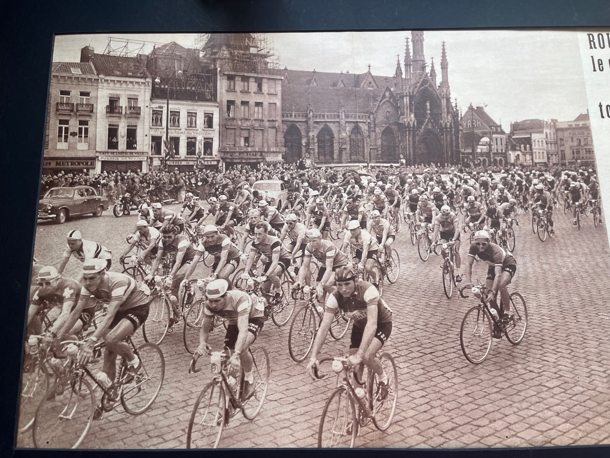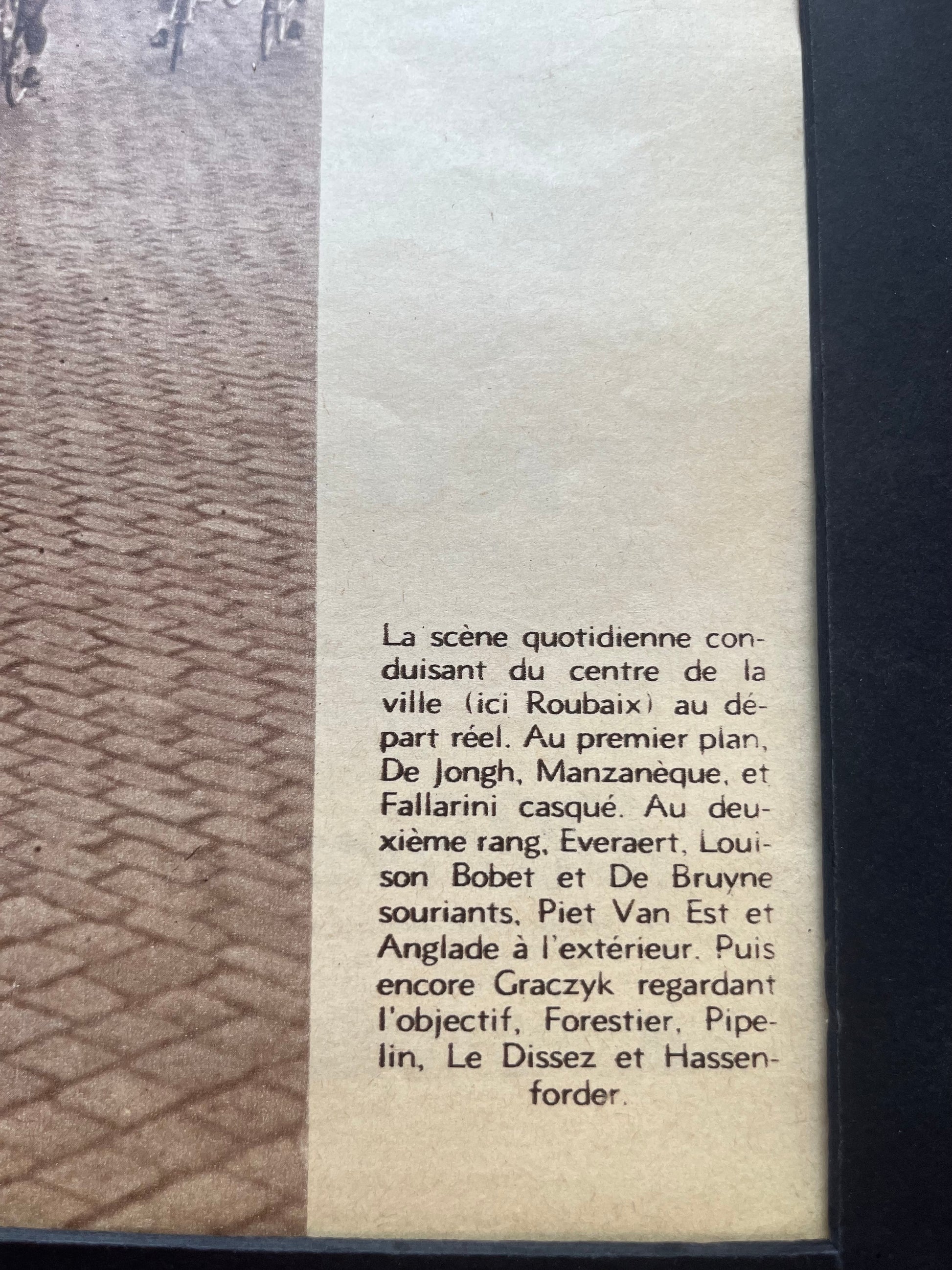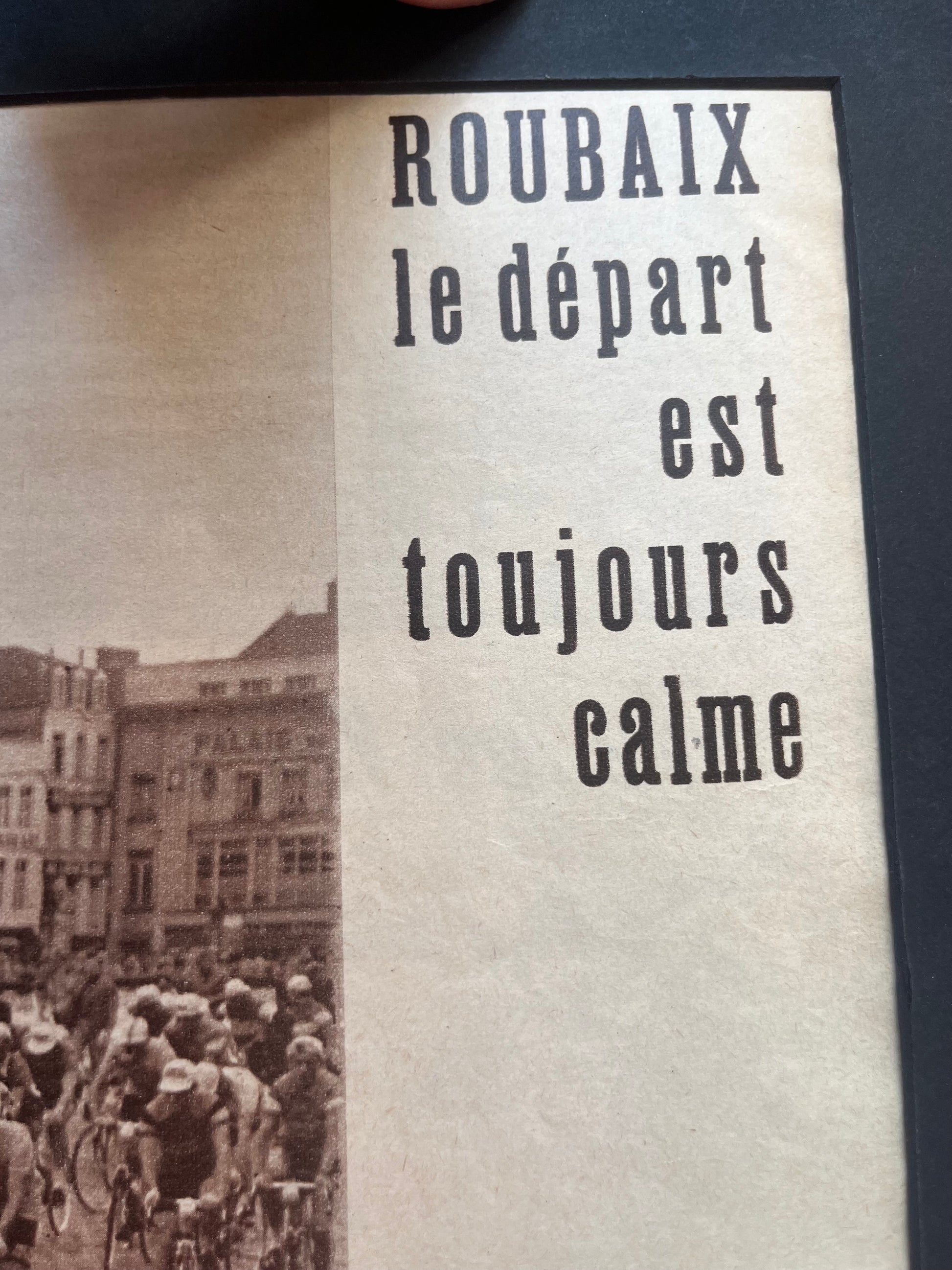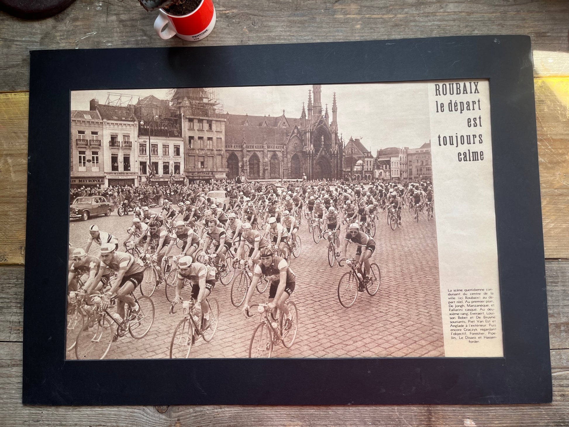 Stunning original 1959 French cycling magazine print showing the start of the famous Paris-Roubaix race.