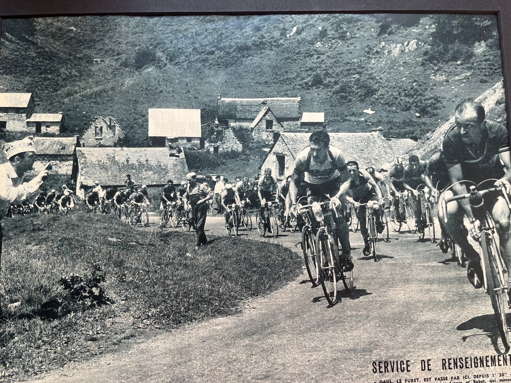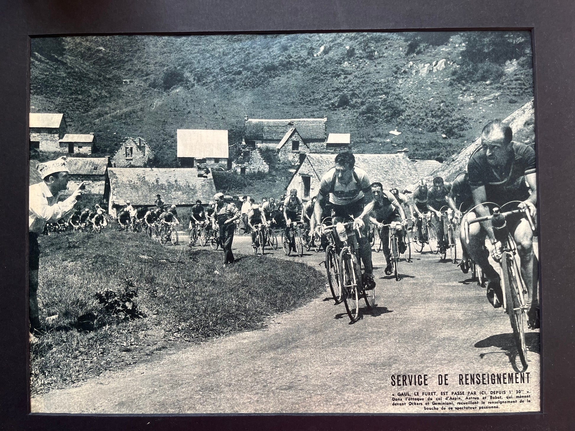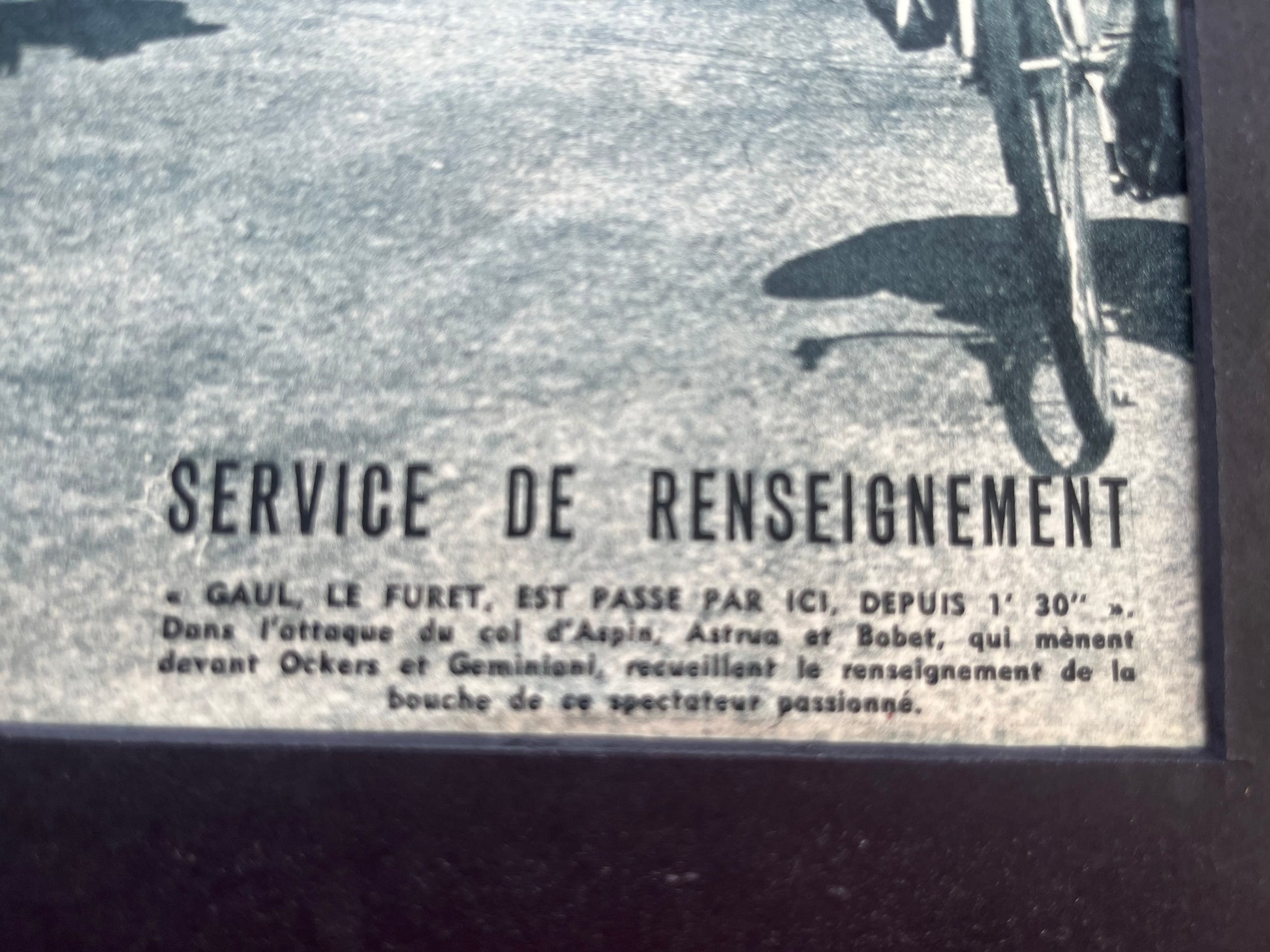 Iconic and very rare Original 1950s French cycling magazine print showing Louison Bobet leading Raphael Geminiani in the Tour de France.