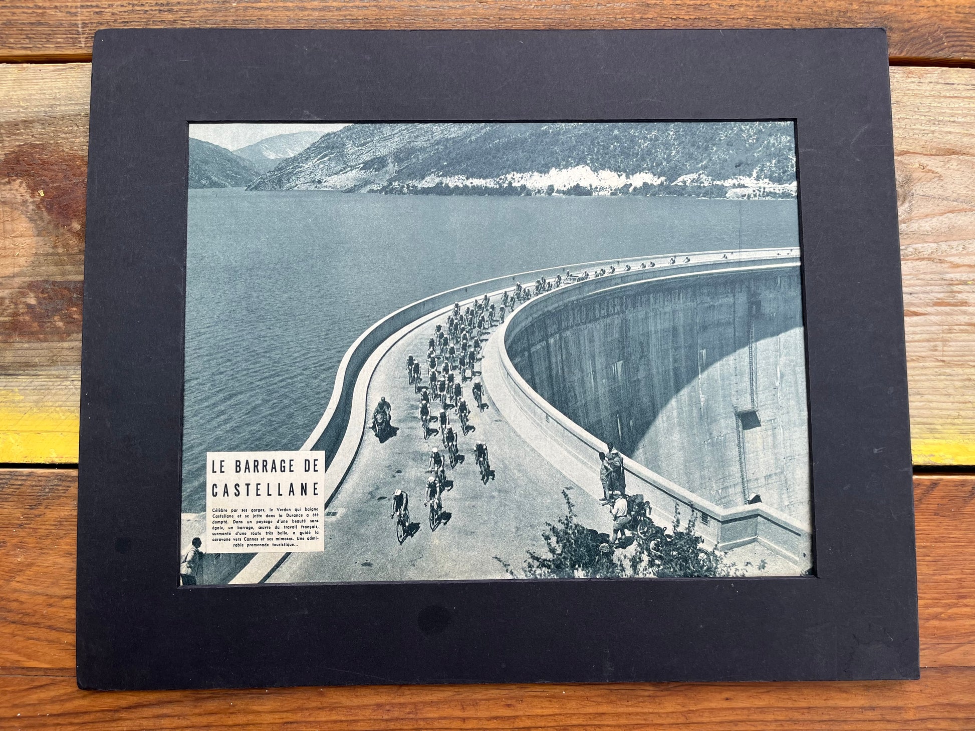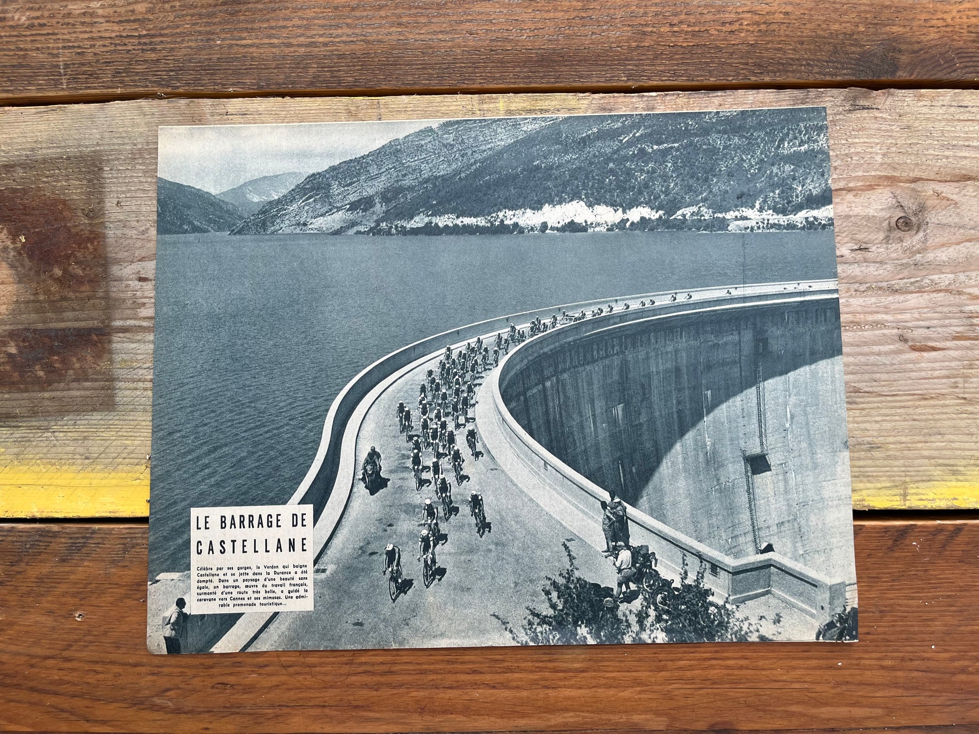 Iconic and very rare Original 1950s French cycling magazine print showing the Barrage de Castellane in the 1957 Tour de France.