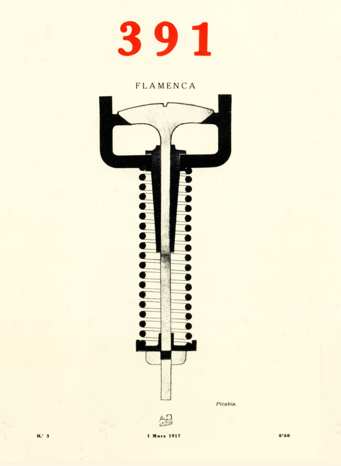 “391” was a Dada affiliated arts and literary magazine published in New York, Zurich and Barcelona between 1917 and 1924. This piece of artwork was the cover of the March 1917 edition.