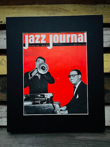 A rare vintage British Jazz Journal magazine cover artwork, featuring Earl 'Fatha' Hines and Jack Teagarden.