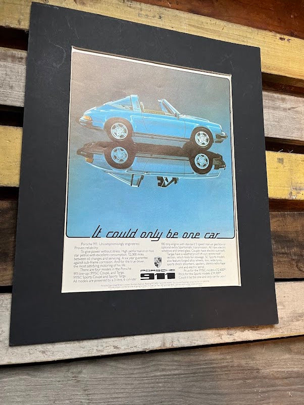 Original Porsche 911 Targa advertisement c1976. Card mounted and ready for framing. This is an original print and not a scanned copy. A superb piece of artwork and a great gift for the Porsche enthusiast.