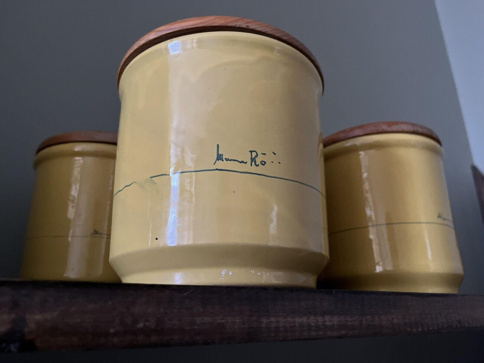 Vintage Mamma Ro Yellow glazed Pottery Cannisters, Italy Rare Item