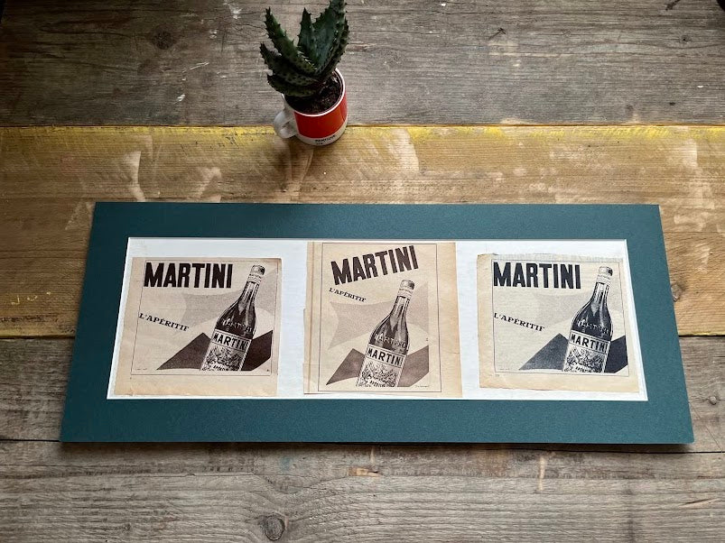 Bespoke Martini artwork from original 1950s print advertisements. Card mounted and with a black card surround.