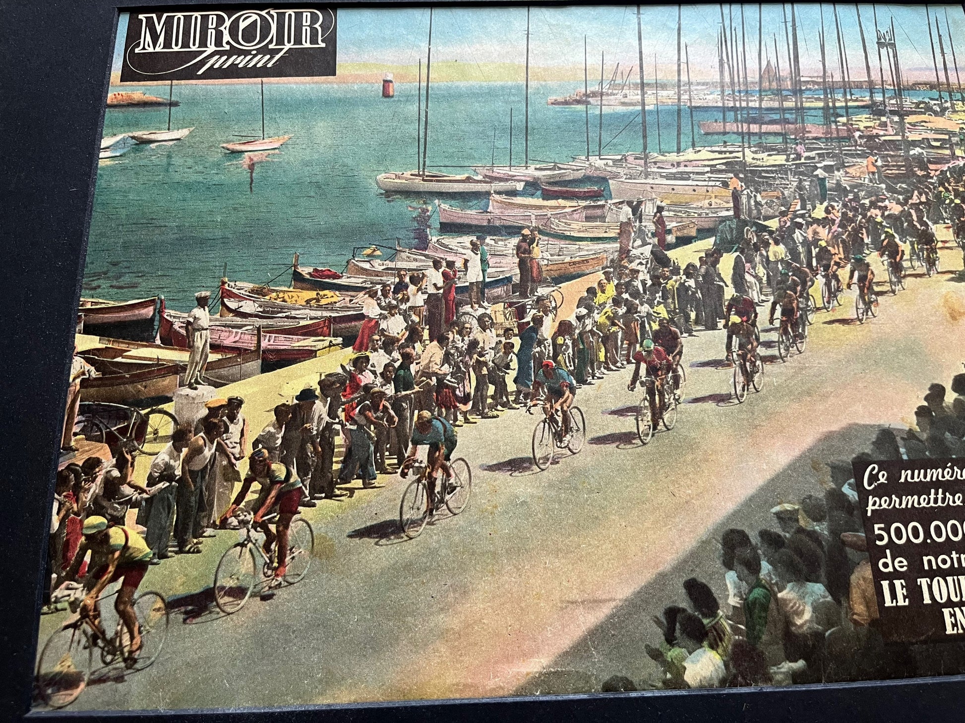 Very rare original 1949 cycling magazine print featuring the peloton riding past a port. Would look excellent framed.