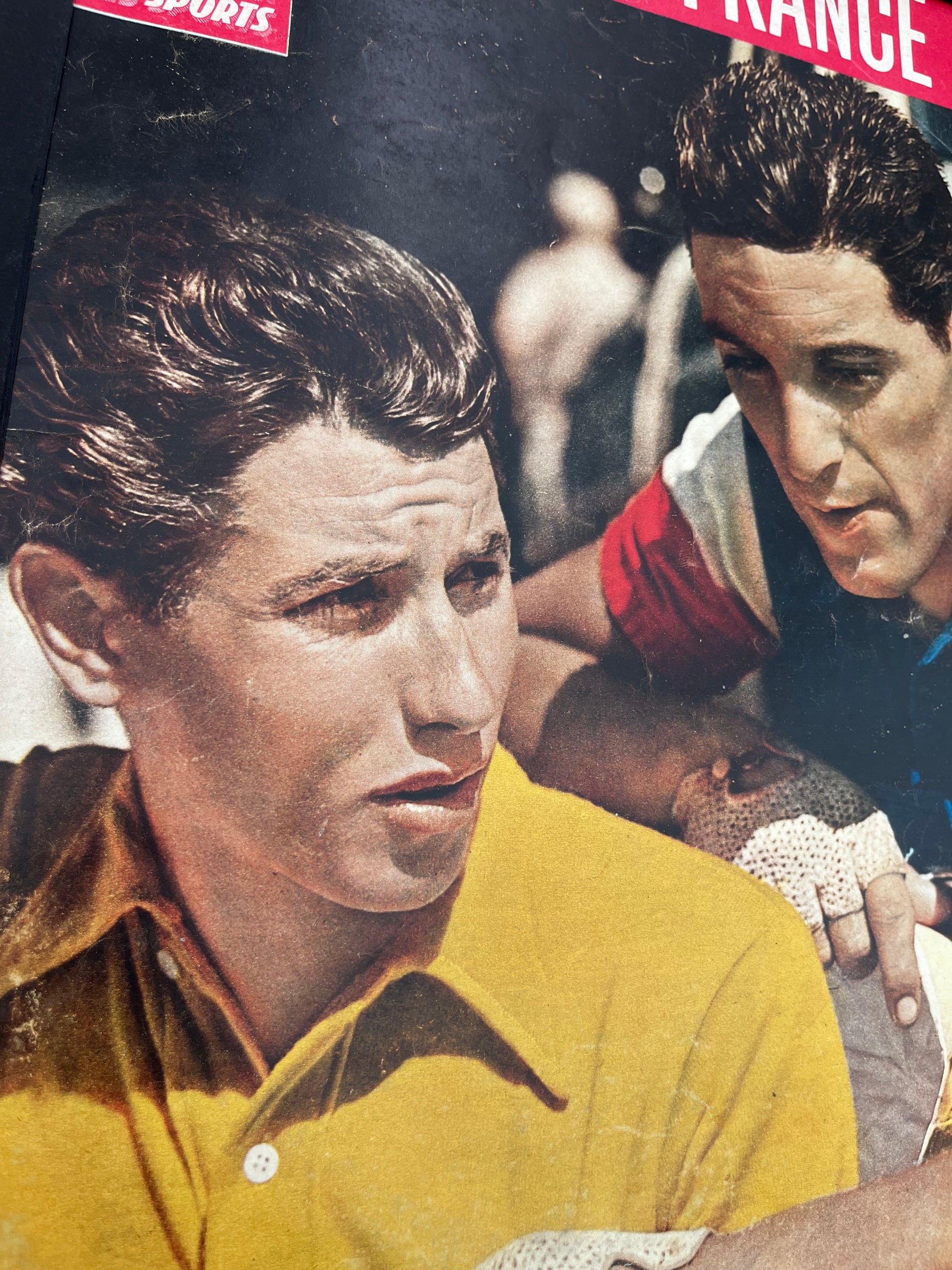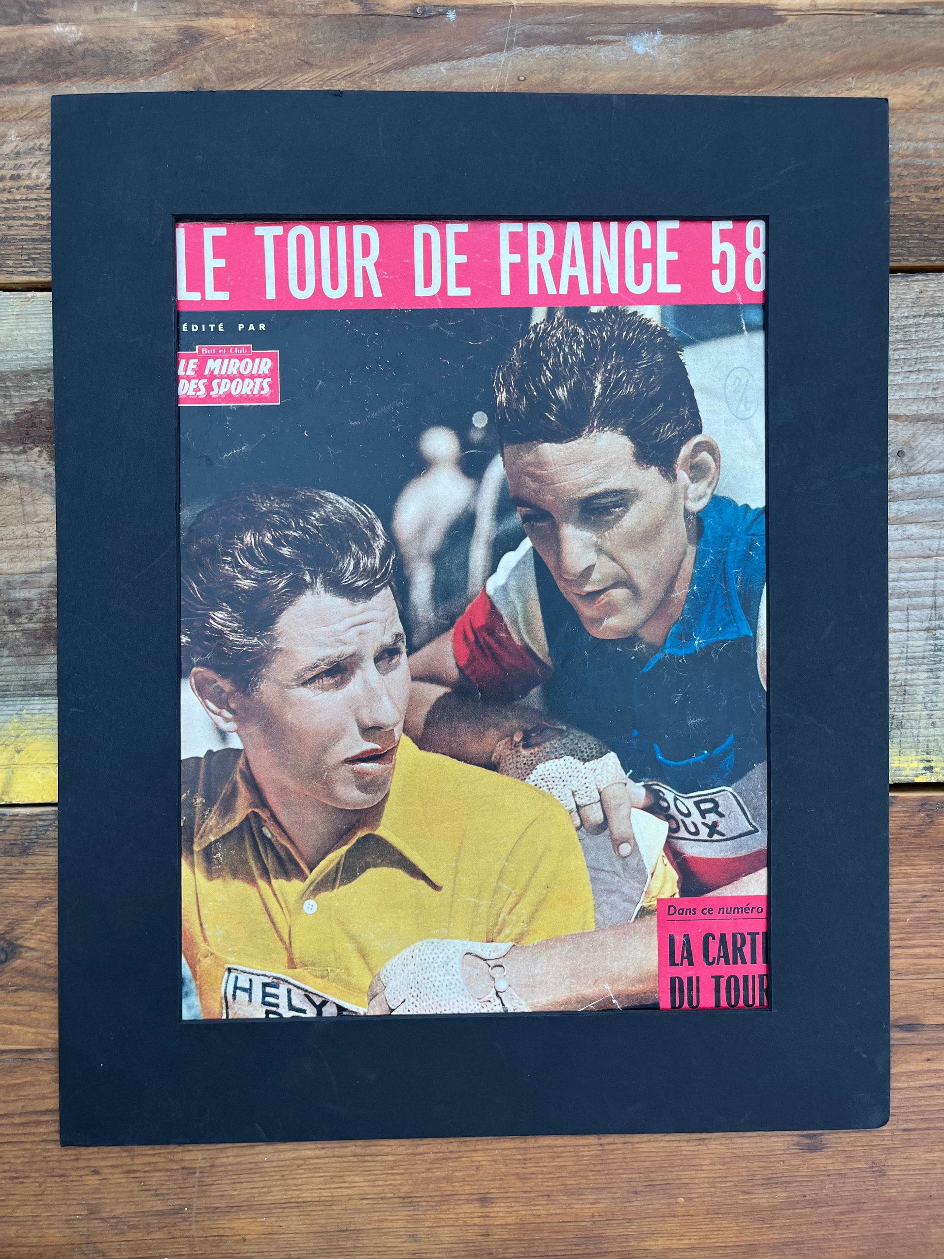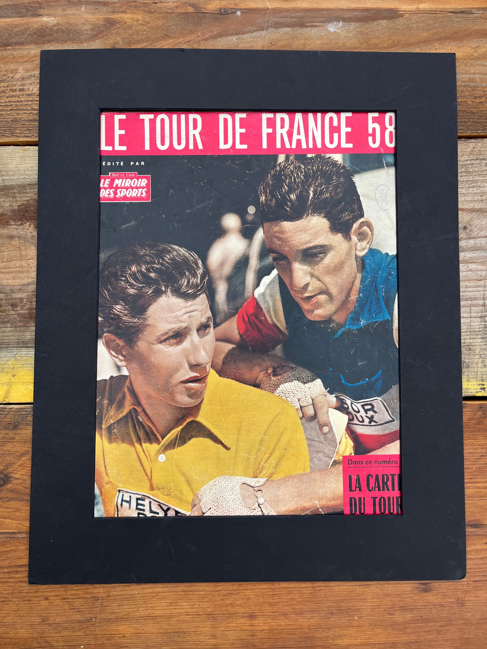 Iconic and very rare 1958 Tour de France magazine print featuring Jacques Anquetil and Jean Forestier.