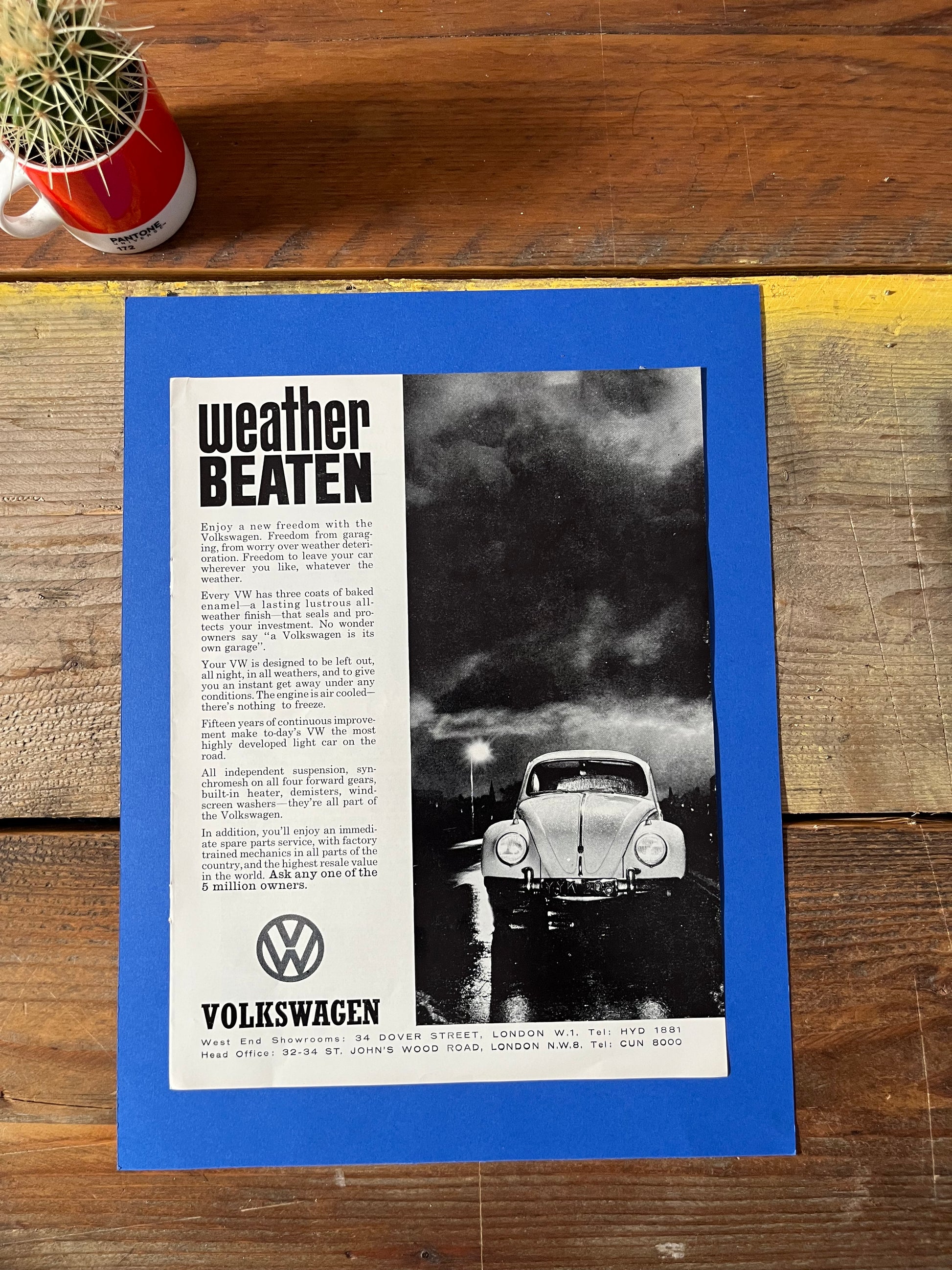 Vintage VW Volkswagen Beetle advertising print - 1960s